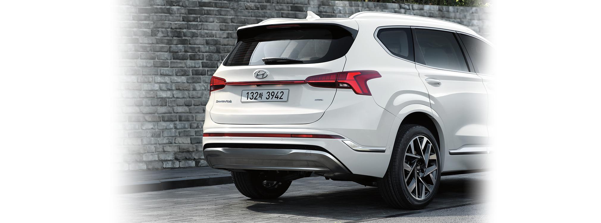 2022 현대 싼타페는 대형 테일게이트를 중심으로 공간에 의해 재정의된 독창적인 타이폴로지가 인상적이다. 대담한 루프 라인과 날카롭게 디자인된 휠 아치, 길어진 전장과 짧아진 프런트 오버행, 21인치 휠 등이 어우러져 있다. 이런 디자인 요소들이 싼타페의 미래지향적인 디자인을 완성한다.