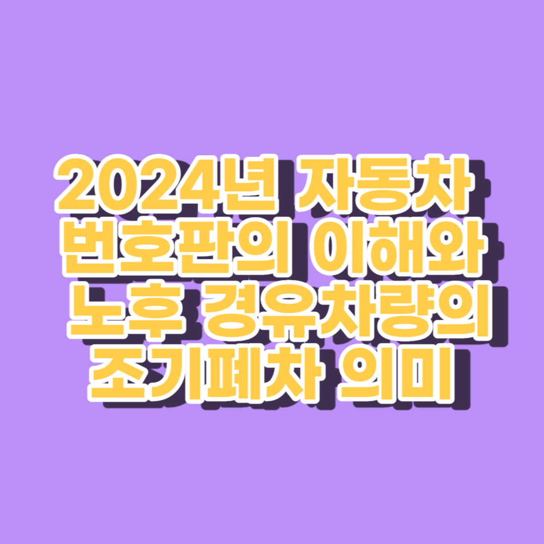 2024년 자동차 번호판의 이해와 노후 경유차량의 조기폐차에 대한 정보는, 안전한 운전과 환경 보호에 큰 도움이 됩니다. 우리 모두 이를 잘 이해하고 적용하여 안전한 운전 문화를 만들어가는데 기여합시다.